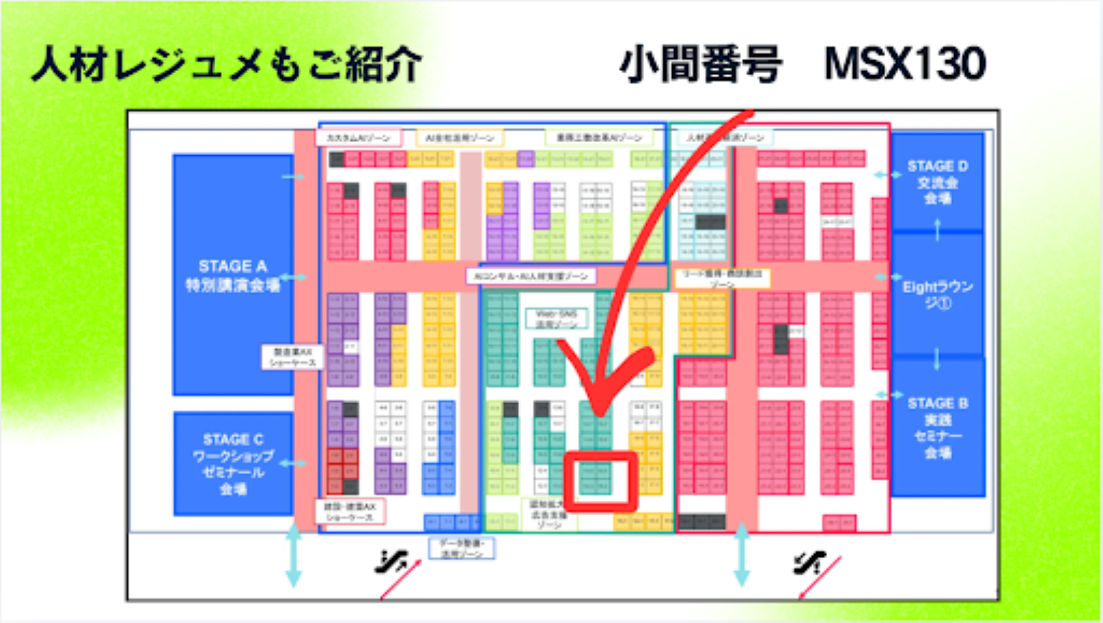 当日は担当者が直接ご相談を承り、貴社の状況に合わせた最適なご提案を行います。マーケティングやAI人材の採用にお困りの方は、ぜひお立ち寄りください。