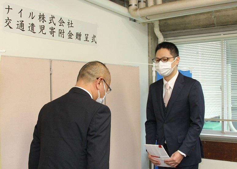 いただいたご寄付につきましては、県内の交通遺児の方々の入学・卒業の祝い金や、図書カード等の配布に効果的に使わせていただきたく思います。本当に寄附いただきまして、ありがとうございました。
