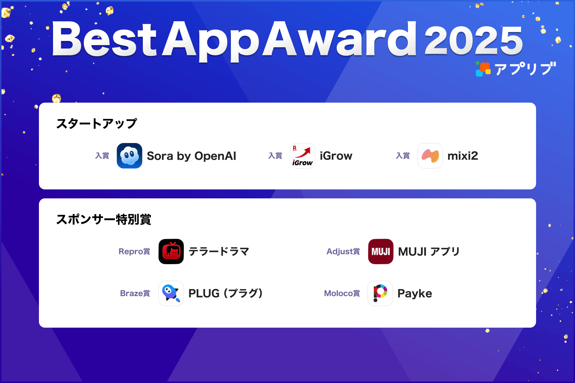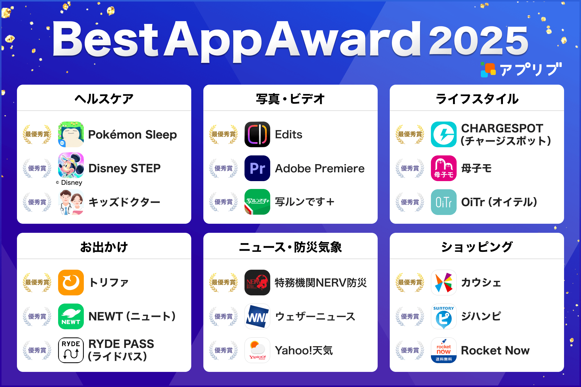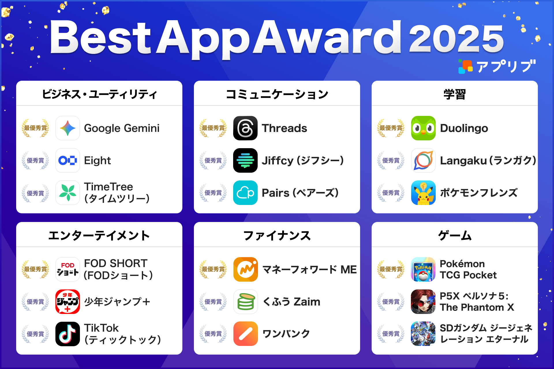 「アプリブ Best App Award 2025」全受賞アプリ一覧